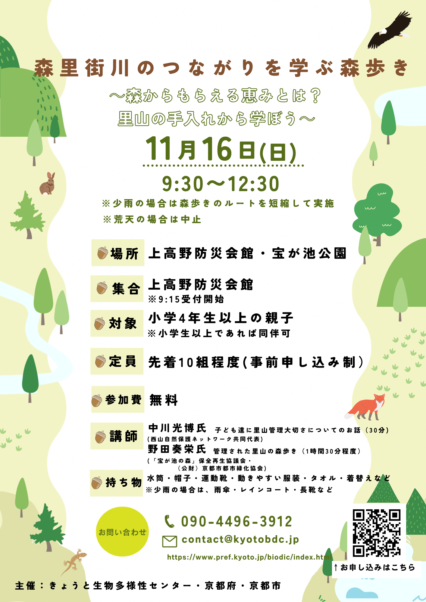 きょうと生物多様性センター > 【中止のお知らせ】「森・里・街・川のつながりを学ぶ森歩き」