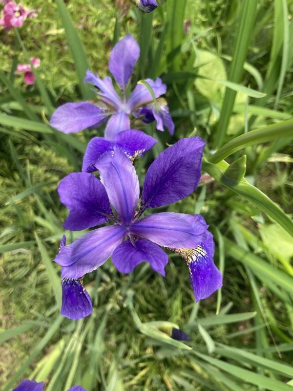 5月の中旬、大原野フジバカマ園より譲り受けた絶滅危惧種のアヤメが一斉に咲きました。花壇の土を耕して肥料をいれ、定植しました。小ぶりですが、濃い紫色の花は野性的な美しさがあります。花の日数が短いのが残念でした。