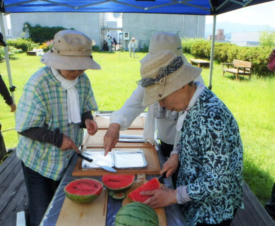 この日は臨時の活動日。野菜の収穫体験に来てくれた子どもたちと1時間程過ごしました。暑い中でしたが、ミニトマト、小玉スイカなどたくさんの野菜を収穫していただきました。