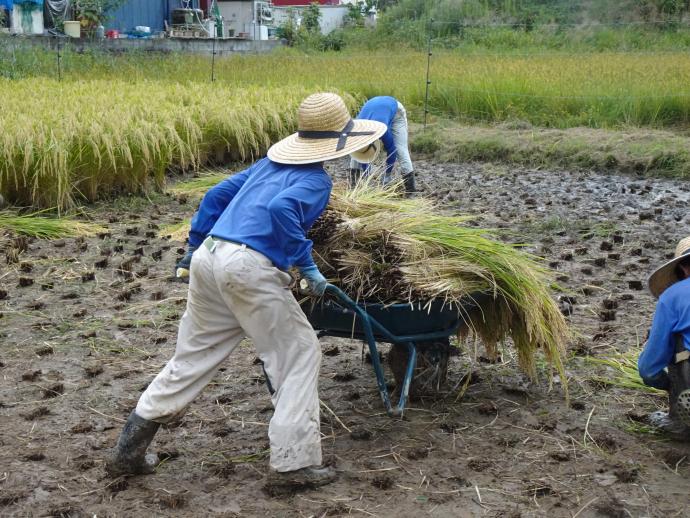 稲は思っていたより重くて、束ねて干すのは大変でしたがみんなで協力して行いました。