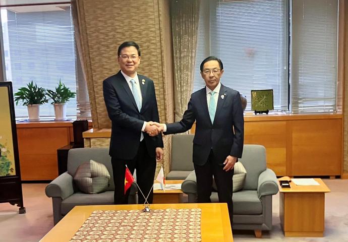 ファム・クアン・ヒエウ駐日ベトナム社会主義共和国大使に、京都府を表敬訪問いただきました。京都府と分野別交流を展開しているフエ市との交流をはじめ、人材育成、労働者支援及び科学技術分野における両国の発展について話し合いました。