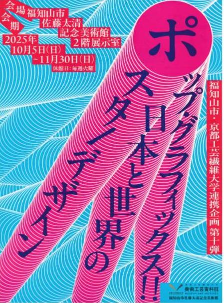 この企画展は、福知山市と京都工芸繊維大学の連携企画として今年で10回目となります。本年は、京都工芸繊維大学美術工芸資料館のコレクションより、20世紀後半の日本とか欧米各国のポップなグラフィック・デザインを紹介します。